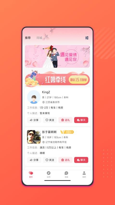 僖廷婚恋最新版集成了先进的用户画像技术和大数据分析,能够根据用户的兴趣爱好、生活习惯、择偶标准等信息,进行精准匹配,为用户推荐最合适的潜在伴侣。同时,软件提供丰富的互动功能,如在线聊天、视频通话、动态分享等,让用户在轻松愉快的氛围中加深了解,增进感情。