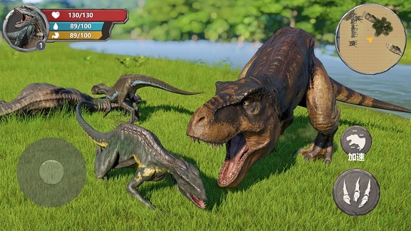 2. 成长进化:通过不断进食和战斗,你的恐龙将逐渐成长并解锁新的能力,如更强大的攻击力、更快的奔跑速度等。