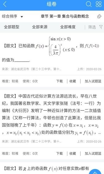 组卷网中小学全科题库v1.1.2集成了丰富的题库资源,包括同步练习、章节测试、模拟试题、历年真题等多种题型,覆盖语文、数学、英语、物理、化学、生物、地理、历史、政治等全科目。用户可根据教学需求或学习进度,自由组合题目生成试卷,支持一键下载打印或在线作答,方便快捷。