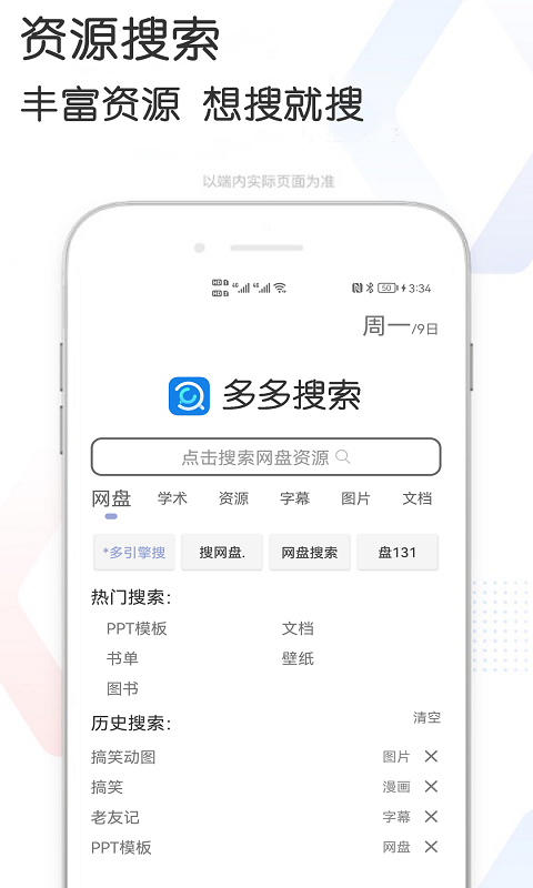 1. 打开应用:在手机上安装并打开多多资源搜索App。