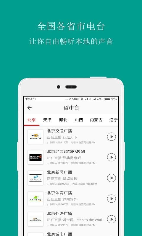 FM手机调频收音机app利用先进的网络技术和音频流技术,将传统广播电台的内容实时传输到用户的手机上。用户只需简单操作,即可搜索并收听自己喜爱的电台节目,享受与传统收音机相同的收听体验,同时更加便捷、灵活。