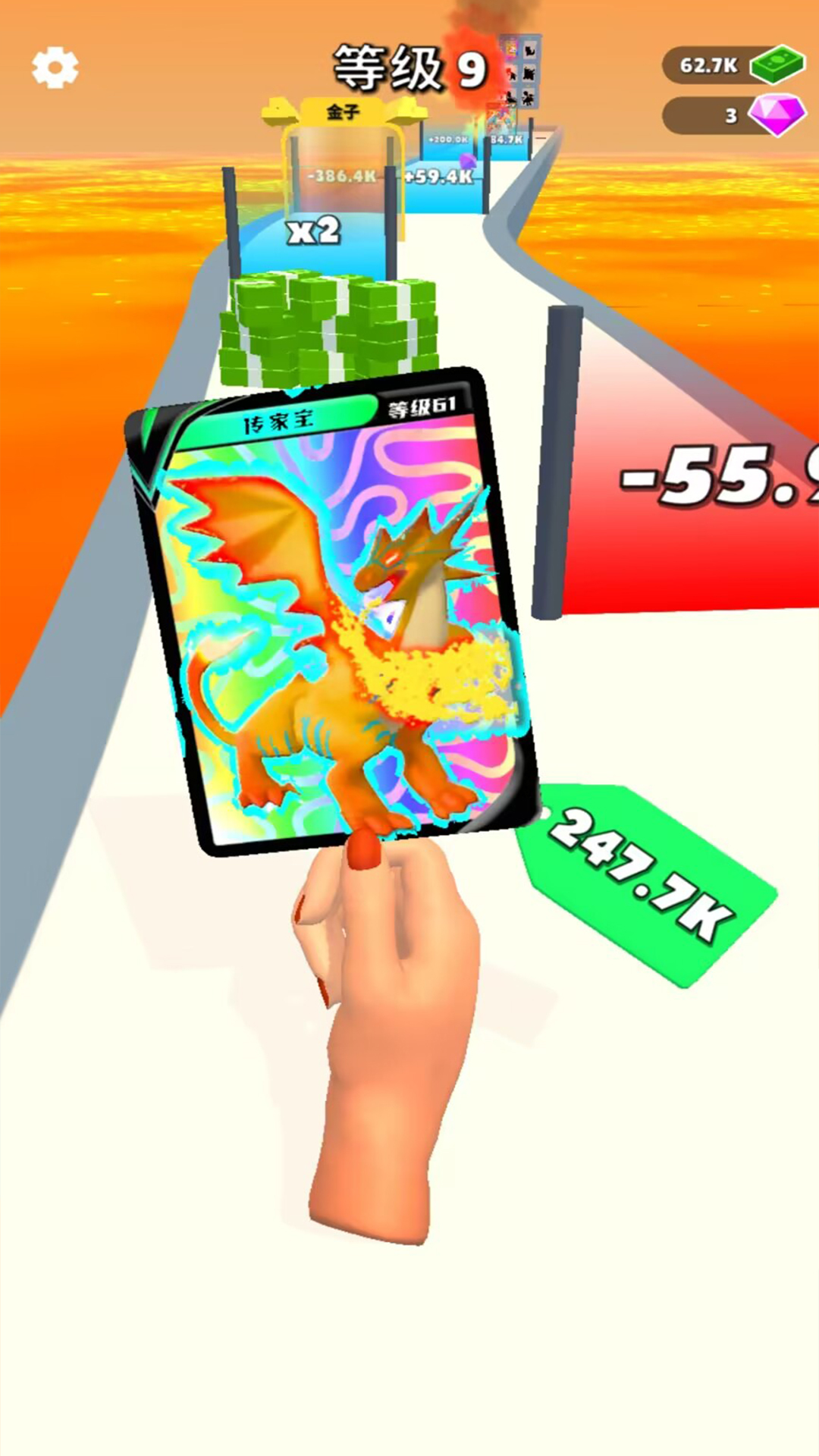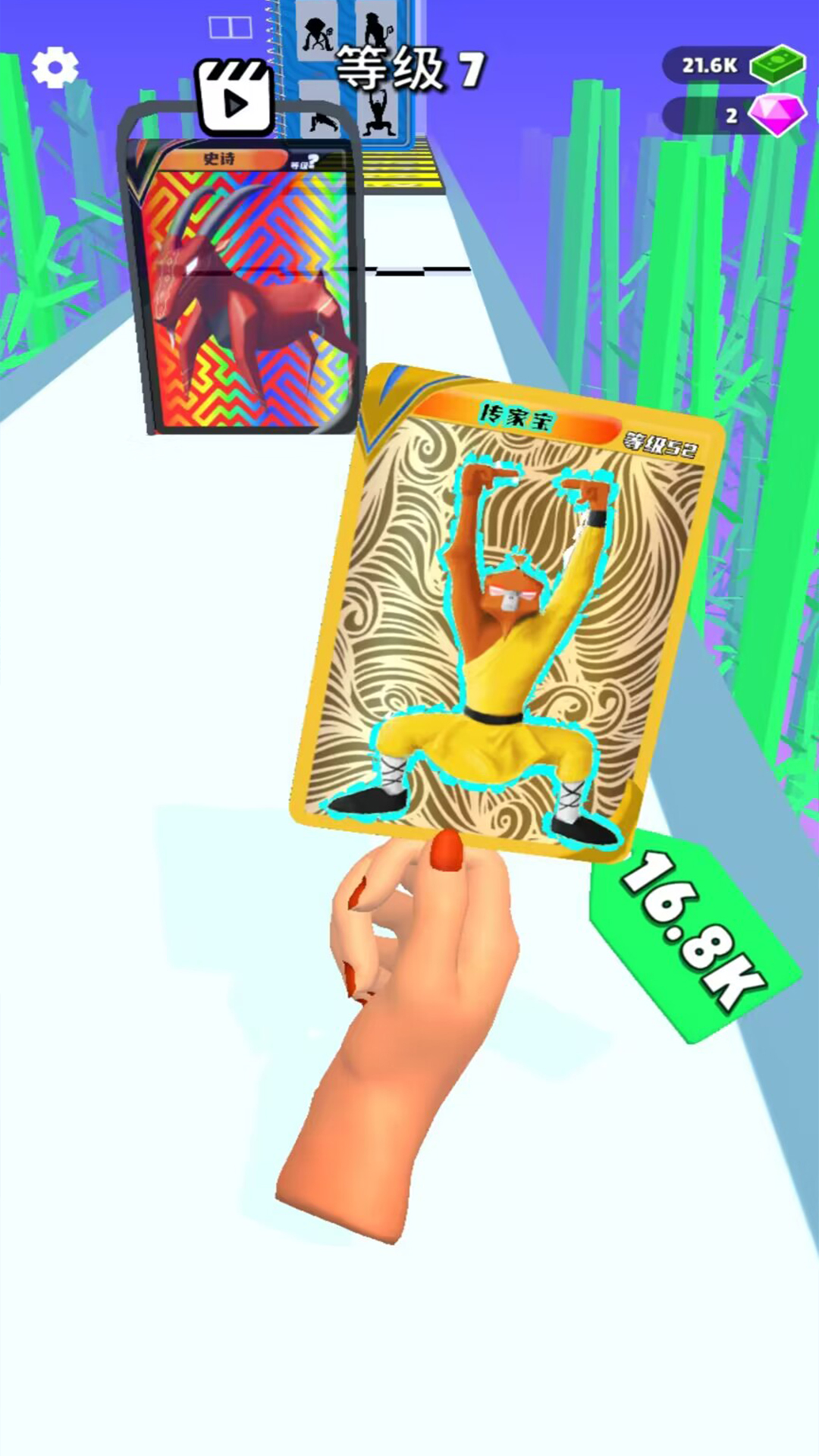 2. 卡牌收集:在跑酷过程中,玩家需要收集散落的卡牌,每张卡牌都拥有独特的技能和属性,可以在后续关卡中使用。