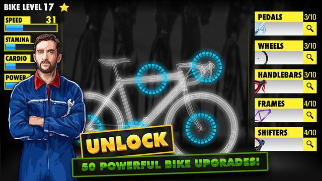3. 自定义装备:丰富的装备系统,玩家可以根据个人喜好和比赛需求,自由搭配自行车、服装和配件。