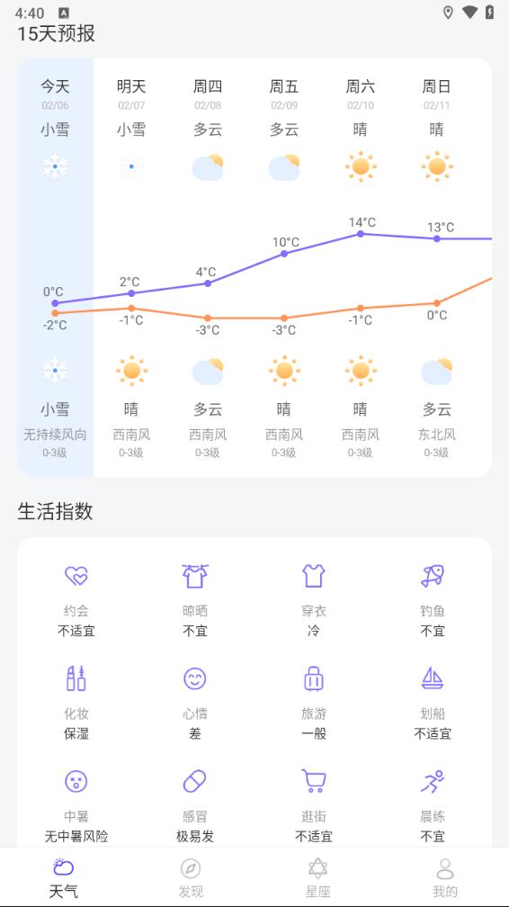 4. 生活指数参考:查看穿衣、洗车、旅游、运动等生活指数,合理安排日常活动。