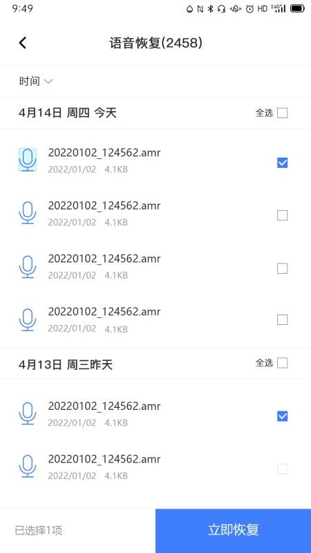 4. 预览并恢复:扫描完成后,在列表中预览需要恢复的文件,选择后点击“恢复”按钮即可。