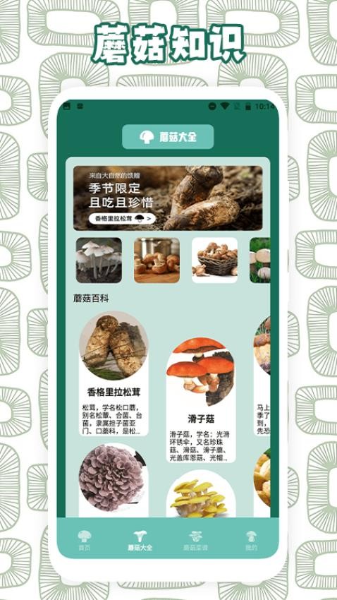 2. 全面知识库:提供详尽的蘑菇信息,包括种类介绍、生长习性、用途与注意事项等。