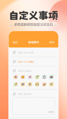 1. 纪念日管理:支持添加无限个纪念日,包括生日、恋爱纪念日、结婚纪念日、节日等。