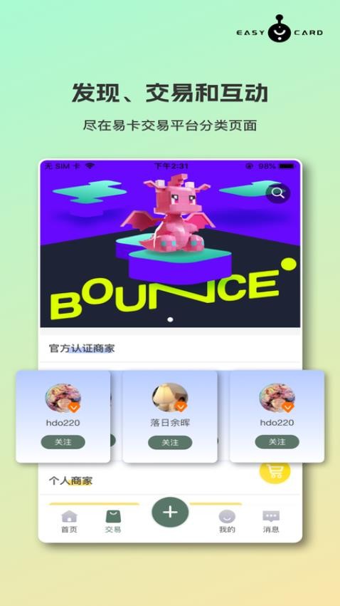 YK易卡作为一款专为卡片收藏爱好者打造的社区类卡收藏交易平台,凭借其丰富多样的卡片资源、安全可靠的交易环境以及便捷高效的交易流程,赢得了众多用户的青睐。如果你也是一位卡片收藏爱好者,不妨下载YK易卡最新版,开启你的卡片收藏之旅吧!