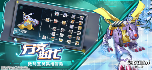 3. 进化系统:数码宝贝拥有从幼年期到成长期、成熟期、完全体、究极体的多重进化路线,玩家需与数码宝贝互动,提升友好度,解锁新的进化形态。