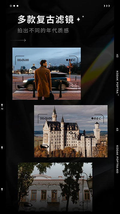 1. 复古滤镜:Dazz相机内置了超过100种滤镜,包括胶片、怀旧、复古、黑白、场景、肖像等多种类型,用户可以根据自己的喜好选择合适的滤镜进行拍摄。