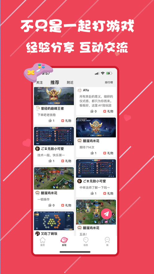 5. 社交互动:除了游戏陪玩,用户还可以在平台上结交新朋友,拓展社交圈。