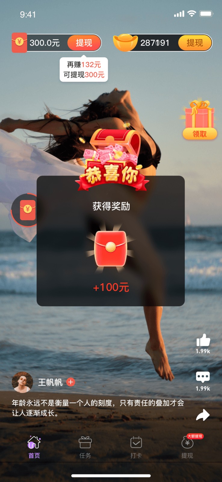 5. 任务奖励机制:通过观看视频、完成任务等方式赚取收益,增加用户的参与度和粘性。