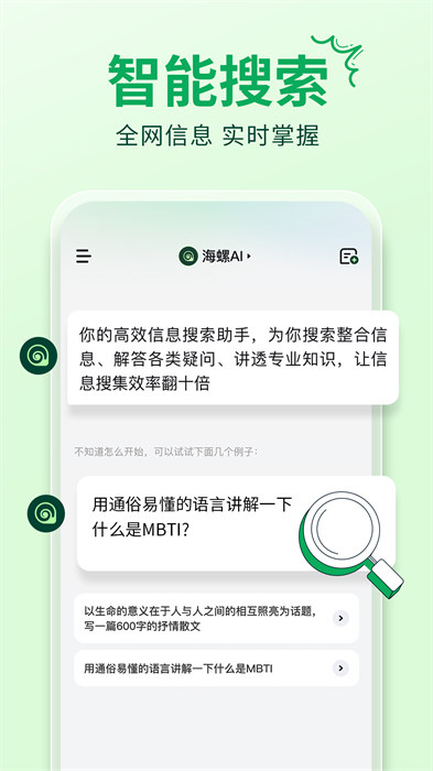 海螺问问是一款集知识问答、AI智能助手为一体的多功能软件,旨在为用户提供便捷、高效的智能服务体验。通过先进的自然语言处理技术和庞大的知识库,海螺问问能够快速、准确地响应用户的各种需求,无论是生活常识、专业知识还是创意写作,都能得到满意的答案。