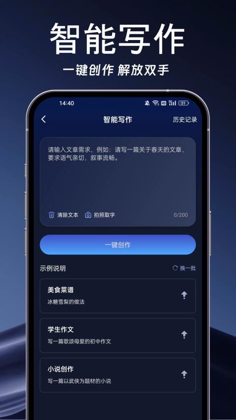 1. 智能创作:利用AI技术,理解用户意图,自动生成符合要求的文本内容,减轻创作负担。