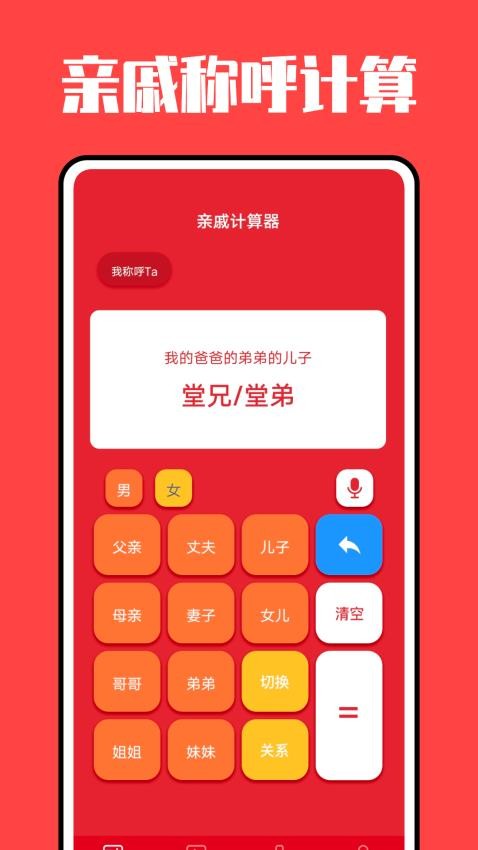 亲戚称呼计算器是一款专为解决中文复杂亲戚关系称呼问题的实用工具软件。它通过智能化的计算方式,帮助用户快速准确地找到对应亲戚的称呼,适用于各种家庭场合和社交情境。