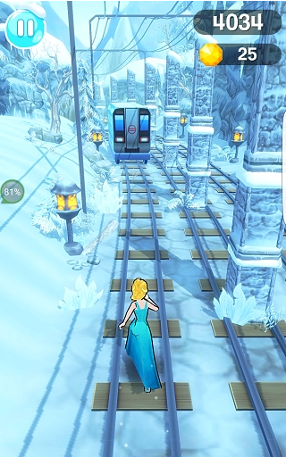 1. 玩家需要操控冰女王在地铁轨道上奔跑,躲避列车、路障、警察等障碍物。