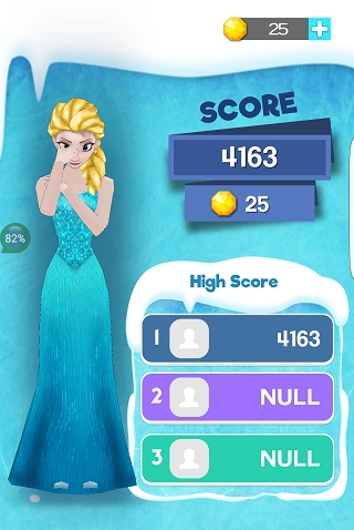1. 滑动屏幕控制冰女王左右移动、跳跃、滑行等动作,躲避障碍物。