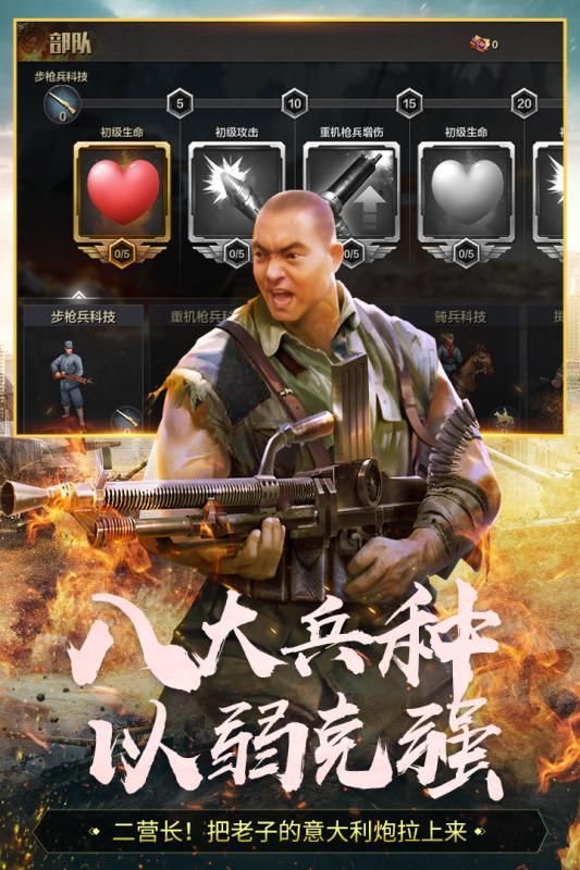 2. 多样的兵种:游戏中拥有八大兵种,每个兵种都有其独特的优势和特点。玩家可以根据战斗的需要,自由选择兵种进行搭配,打造最强战斗阵容。