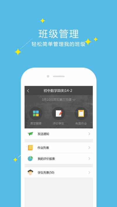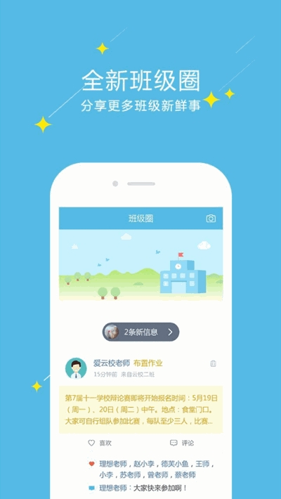2.轻松的帮助老师管理自己的班级,采用智能的线上考勤管理技术;