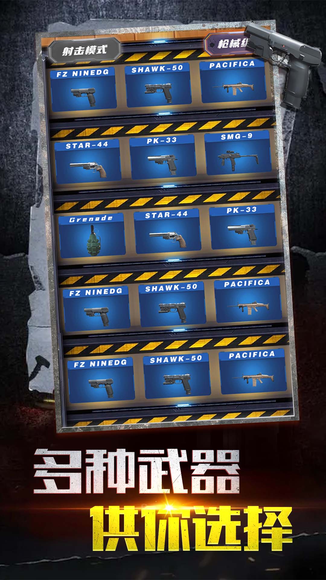 1. 多种武器选择:游戏提供了多种类型的武器,包括手枪、步枪、狙击枪等,每种武器都有其独特的性能和用途。