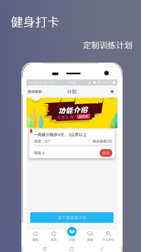 1. 设定明确目标:在健身打卡app中,用户可以设定具体的健身目标,如每周跑步多少次、减重多少斤等,有助于保持动力和方向感。
