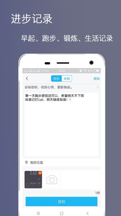 3. 数据记录与分析:app会记录用户的打卡数据,并生成统计图表,帮助用户直观了解运动成果和趋势。