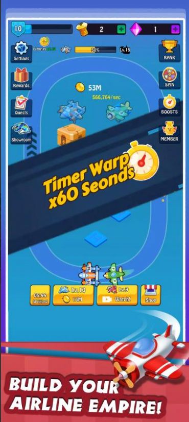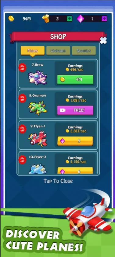 2. 放置飞机:玩家需要将飞机放置在航线上,让飞机自动飞行并赚取金币。即使玩家处于离线状态,飞机也会继续飞行并产生收益。