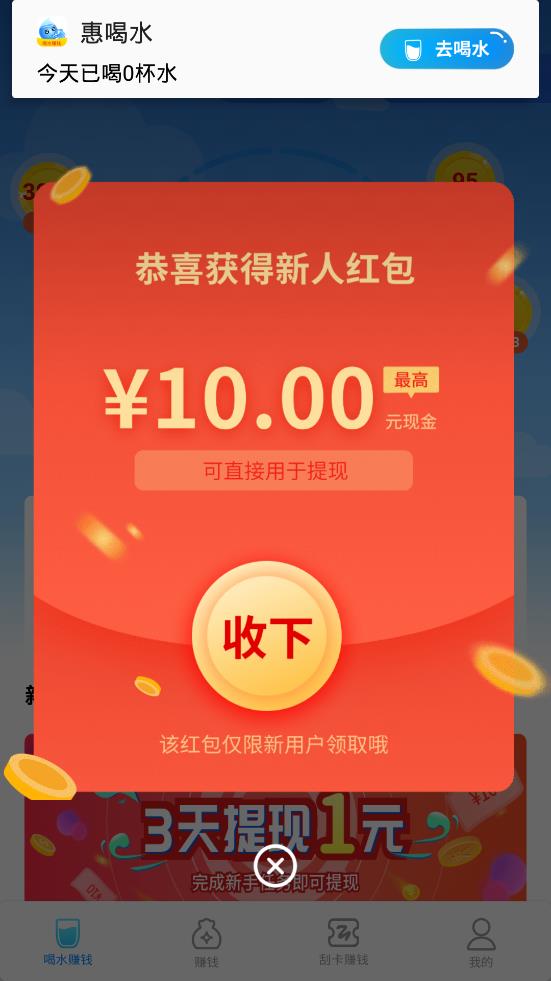 3.快速提现:能将自己所有喝水赚钱的收益全部都提现出来,特别的方便。