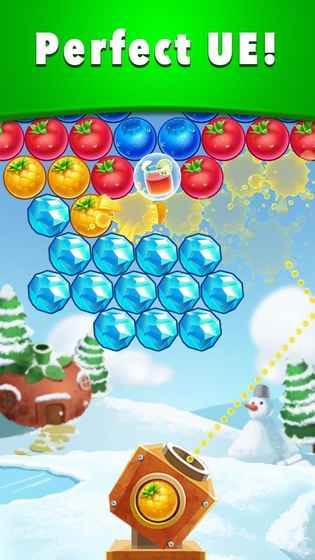 2. 发射泡泡:通过手指滑动屏幕调整发射角度,松开手指发射水果泡泡。