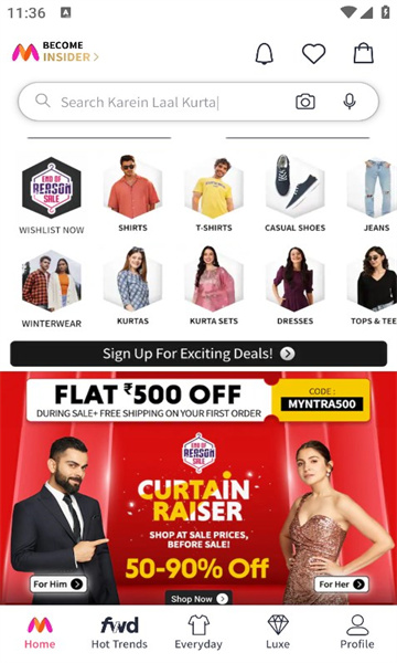 3. 优惠券与促销活动:用户可以关注Myntra的促销活动,领取并使用优惠券,享受更多折扣优惠。