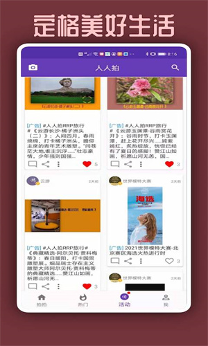 人人拍是一款创新的社交媒体应用,专注于鼓励用户分享生活中的点滴瞬间,通过拍照、录像及简短文字描述,记录并传播个人见解与生活趣事。它旨在连接不同背景与兴趣的人们,共同构建一个充满活力与创意的社交平台。