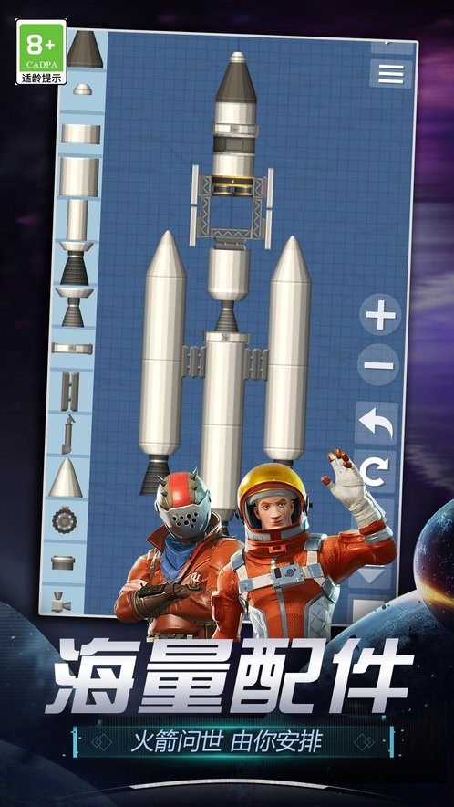 1. 零部件选择:游戏提供丰富的零部件,如发动机、燃料舱、指挥舱、分离器等,玩家可以自由组合。