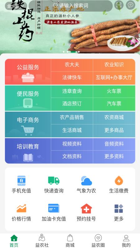 益农信息社app是一款农业部信息进村入户服务应用软件,涵盖了公益服务、便民服务、电子商务、培训教育等多元化服务项目,还能在线进行手机充值、快递查询、生活缴费、加油卡充值、预约挂号等服务管理,全面建设和谐农村,为全国农村带去更好的信息服务,汇聚众多专家为一体,提供专业的相关知识,在线购买品种方便快捷,更有超多便民服务等你来体验,保证他们的生活服务水平得到提高;用户还可以在线进行商品的购物活动,海量农产品在线进行销售,提倡优惠、绿色、健康消费,致力于提供更优质的三农服务。