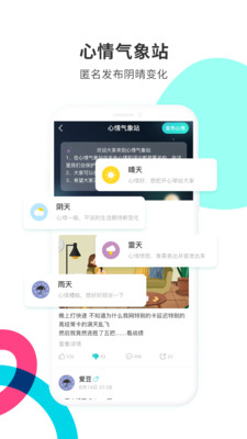 匿名发布带阴晴变化、有态度的心情,参与不同心情的匿名评论和互动。分享快乐心情、吐槽内心困惑、爆料校园八卦。陌生人间的温暖社区。
