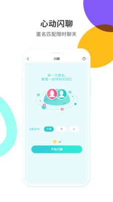 闪聊匹配,开启心跳聊天模式。匿名限时聊天,总能遇见有趣的TA,快去争取互相曝光真实身份的机会吧。