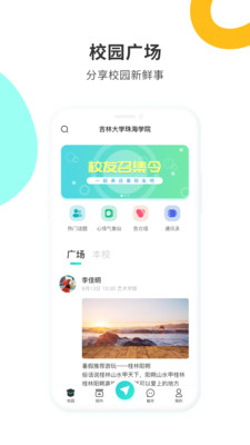 用户随时上线体验愉快的交友服务,在这里让校友之间可以更加直观的联系道对象。