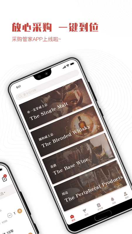 1. 商品分类:采购管家APP提供了丰富的商品分类,包括威士忌、基酒、酒类周边等,满足用户多样化的采购需求。