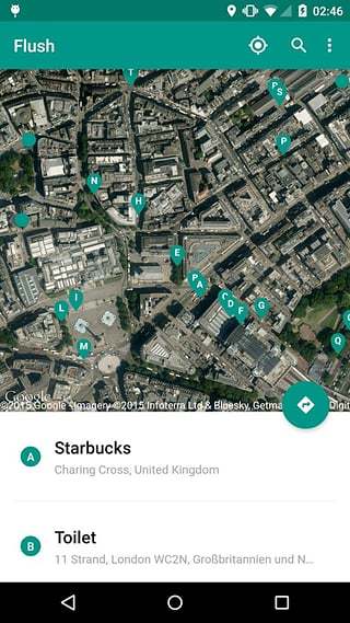 5. 导航前往:用户可以点击地图上的厕所图标,使用谷歌地图或其他导航软件获取前往该厕所的路线和方向。