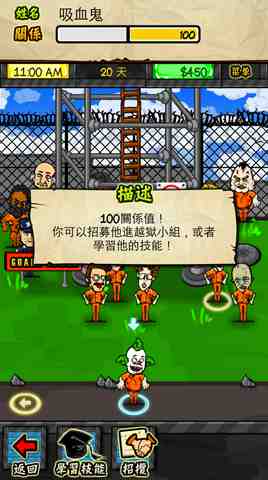 3. 技能学习:玩家可以通过与其他囚犯交流、完成任务等方式来学习新的技能,提高自己的生存能力。技能分为社交、武力、兴趣和偷摸四个派系,玩家可以根据自己的需要选择合适的技能来学习。
