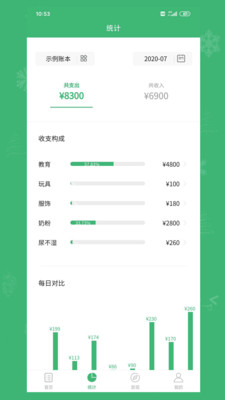3. 报表分析:生成详细的收支报表,包括柱状图、折线图等,直观展示财务状况。
