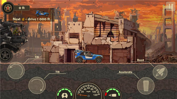 2. 利用地形:玩家可以利用地形和赛车的加速效果,使战车飞起来,避开障碍和僵尸的围攻。