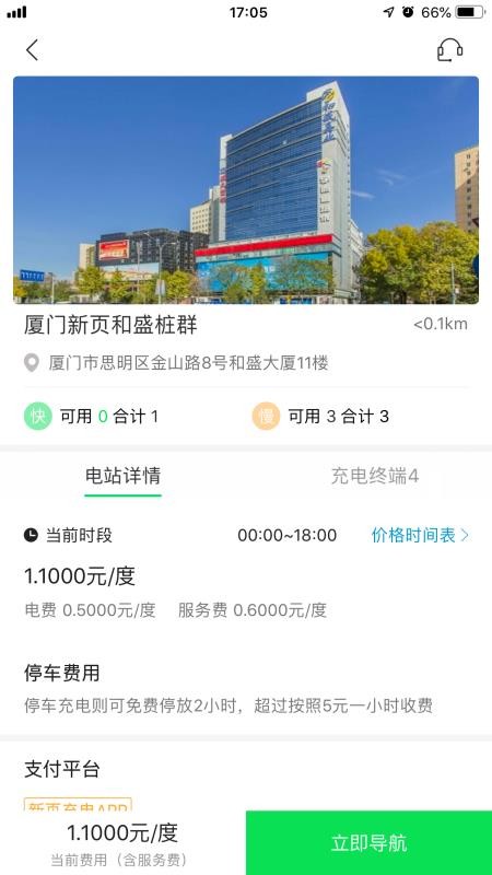 查看充电说明,在选择任意一个充电桩之前可以查看其电费、服务费和停车费、位置等信息;