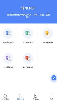 PDF转换王手机版不仅是一款专业高效的PDF转换器,还是一款PDF合并工具。PDF转换王app可以高效实现PDF与其他文件格式的互转,还可以将多个PDF文档合并成一个,并支持管理、查看处理过的文件。