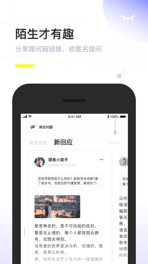 1. 匿名提问:用户可以在POME中向其他用户匿名提问,对方无法看到你的真实身份,保护了你的隐私安全。