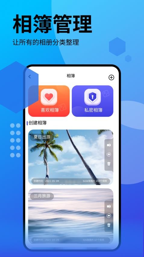 我的相册管理大师通过智能识别与分类技术,将用户的照片和视频按照时间、地点、人物等多种维度进行自动整理,同时提供丰富的编辑与管理功能,满足用户多样化的相册管理需求。