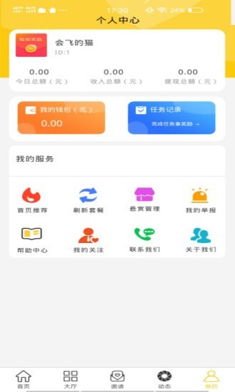 2. 个人中心:用户可以查看自己的任务进度、赏金收益、账户余额等信息,还可以进行提现、充值等操作。