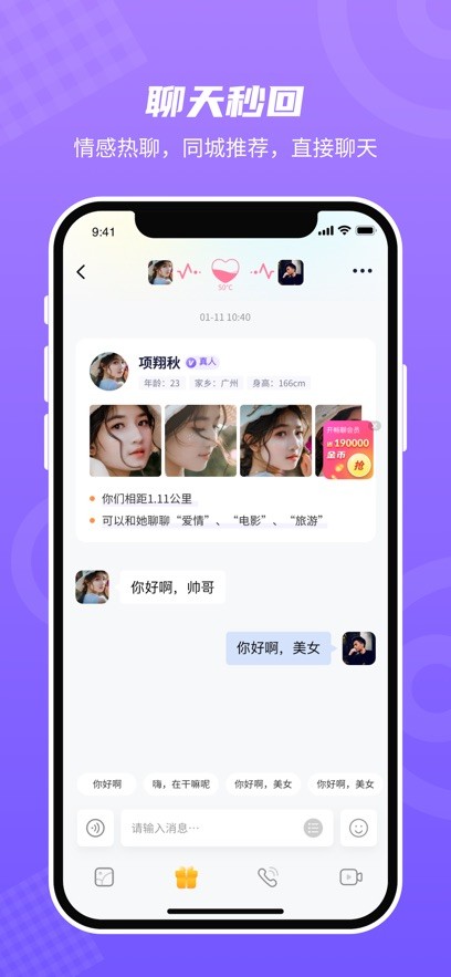 2. 实时聊天:支持文字、语音、视频等多种聊天方式,让用户能够随时随地与心仪的对象进行互动。