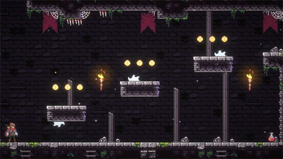 2. 丰富的道具收集:在游戏中,玩家可以收集金币和宝石,这些道具可以用来换取强大的冒险装备或解锁新的能力。同时,关卡中还会出现篝火,玩家可以点燃它设置重生点并回满血量。