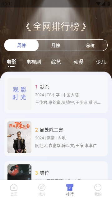 观影时光无广告集合了海量电影、电视剧、动漫、纪录片等丰富视频资源,支持在线播放和离线下载。通过智能推荐算法,该软件能够为用户精准推送感兴趣的影片内容,满足用户个性化的观影需求。