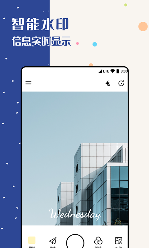 水印美图滤镜相机是一款集水印添加、美图编辑与多样滤镜效果于一体的综合性拍照与图片处理应用。它不仅能够帮助用户在照片上轻松添加个性化水印,还提供了丰富的美化工具和滤镜选项,让用户能够轻松创作出独一无二的高品质图片。